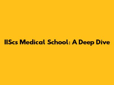 IISc's Medical School: A Deep Dive