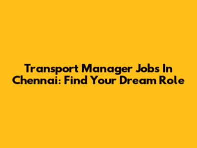 Transport Manager Jobs In Chennai: Find Your Dream Role