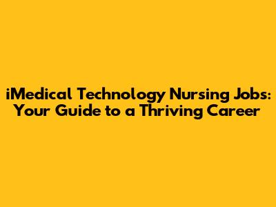 Hey there, future healthcare heroes! Are you ready to dive into the exciting world of iMedical Technology nursing jobs? If you're a registered nurse (RN) with a knack for technology and a passion for patient care, then you're in the right place. This guide will walk you through everything you need to know about this dynamic field, from the skills you'll need to the career paths you can explore. So, buckle up, because we're about to embark on an epic journey into the future of nursing!
