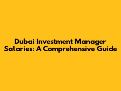Dubai Investment Manager Salaries: A Comprehensive Guide
