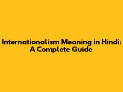 Internationalism Meaning In Hindi: A Complete Guide