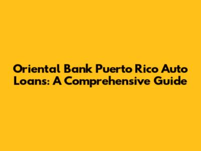 Oriental Bank Puerto Rico Auto Loans: A Comprehensive Guide
