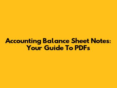 Accounting Balance Sheet Notes: Your Guide To PDFs
