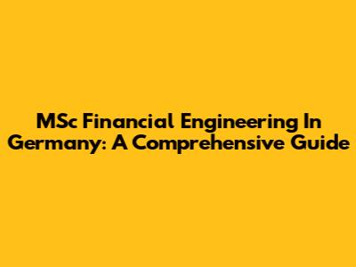 MSc Financial Engineering In Germany: A Comprehensive Guide
