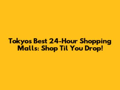Tokyo's Best 24-Hour Shopping Malls: Shop 'Til You Drop!