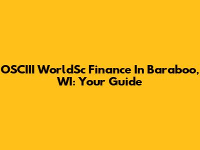 OSCIII WorldSc Finance In Baraboo, WI: Your Guide