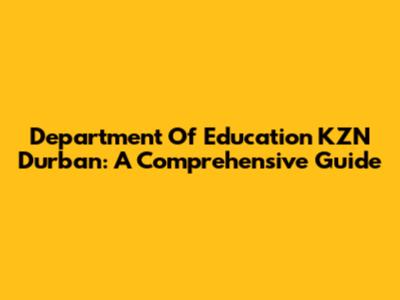 Department Of Education KZN Durban: A Comprehensive Guide