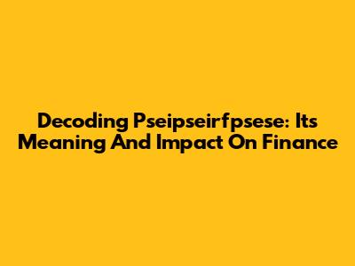 Decoding Pseipseirfpsese: Its Meaning And Impact On Finance