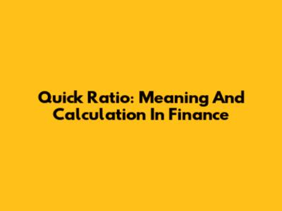 Quick Ratio: Meaning And Calculation In Finance