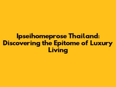 Ipseihomeprose Thailand: Your Gateway To Luxury Living