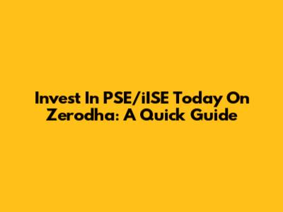 Invest In PSE/iISE Today On Zerodha: A Quick Guide