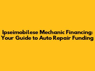 Ipseimobilese Mechanic Financing: Your Guide To Auto Repair Funding