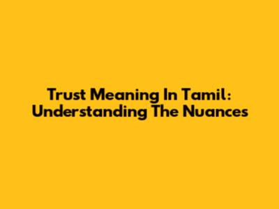 Trust Meaning In Tamil: Understanding The Nuances