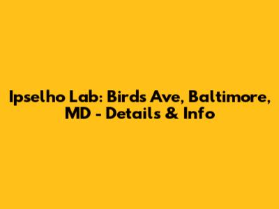 Alright, guys, let's dive into everything you need to know about Ipselho Lab located on Birds Ave in Baltimore, MD. Whether you're a local or just curious, this guide will give you the lowdown on what this lab is all about and why it's important.