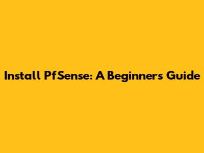 Install PfSense: A Beginner's Guide