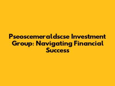 Pseoscemeraldscse Investment Group: Navigating Financial Success