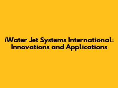 IWater Jet Systems International: Innovations And Applications