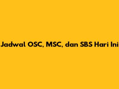 Jadwal OSC, MSC, Dan SBS Hari Ini