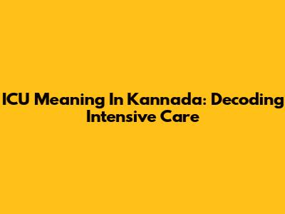 ICU Meaning In Kannada: Decoding Intensive Care