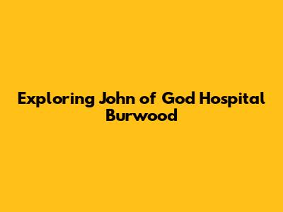 John Of God Hospital Burwood: All You Need To Know
