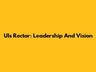 UI's Rector: Leadership And Vision