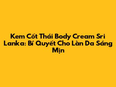 Kem Cốt Thái Body Cream Sri Lanka: Bí Quyết Cho Làn Da Sáng Mịn