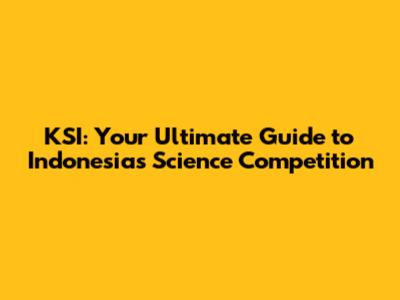 KSI: Your Ultimate Guide To Indonesia's Science Competition