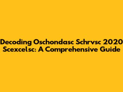 Decoding Oschondasc Schrvsc 2020 Scexcelsc: A Comprehensive Guide