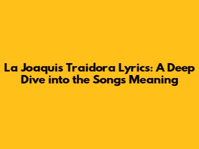 Hey music lovers! Ever found yourself completely hooked on a song? That's definitely the case with "Traidora" by La Joaqui. This track is more than just a catchy beat; it's packed with raw emotion and a story that resonates with so many of us. Let's dive deep into the lyrics of "Traidora", exploring its meaning, the context behind the song, and why it's become such a hit. Get ready to uncover the heart of this powerful anthem!
