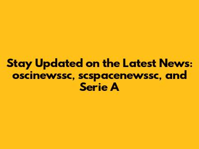 Latest News: Oscinewssc, Scspacenewssc, And Serie A Updates