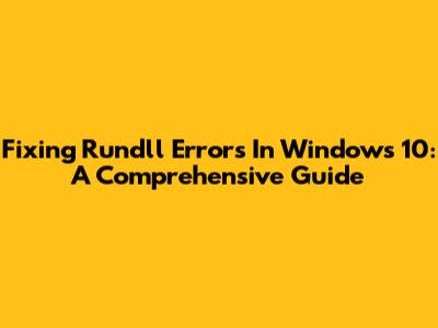 Fixing Rundll Errors In Windows 10: A Comprehensive Guide