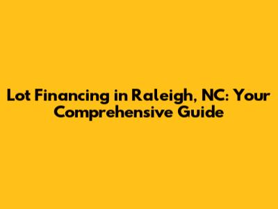 Lot Financing Raleigh NC: Your Guide