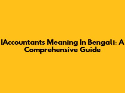 IAccountants Meaning In Bengali: A Comprehensive Guide