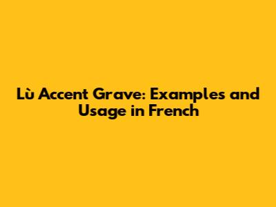 Lù Accent Grave: Examples And Usage In French