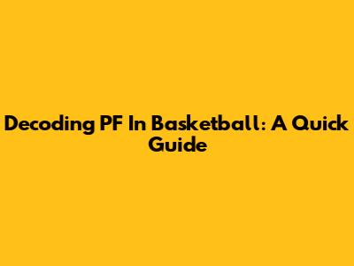 Decoding "PF" In Basketball: A Quick Guide