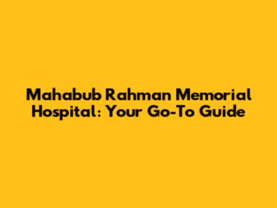 Mahabub Rahman Memorial Hospital: A Comprehensive Guide