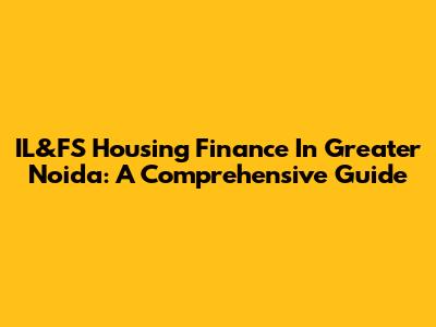 IL&FS Housing Finance In Greater Noida: A Comprehensive Guide