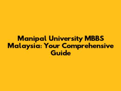 Manipal University MBBS In Malaysia: Your Guide