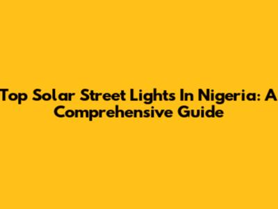 Top Solar Street Lights In Nigeria: A Comprehensive Guide