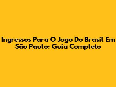 Ingressos Para O Jogo Do Brasil Em São Paulo: Guia Completo