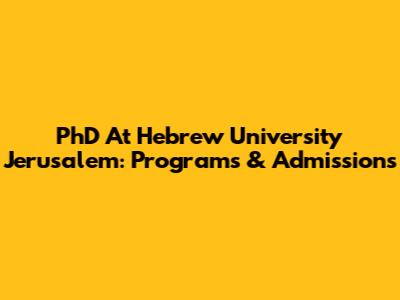 PhD At Hebrew University Jerusalem: Programs & Admissions