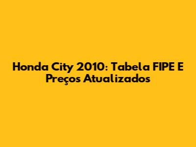 Honda City 2010: Tabela FIPE E Preços Atualizados