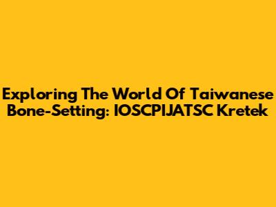 Exploring The World Of Taiwanese Bone-Setting: IOSCPIJATSC Kretek