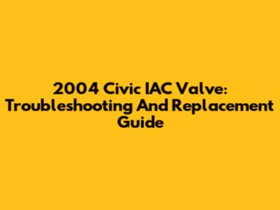 2004 Civic IAC Valve: Troubleshooting And Replacement Guide