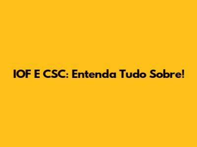 IOF E CSC: Entenda Tudo Sobre!