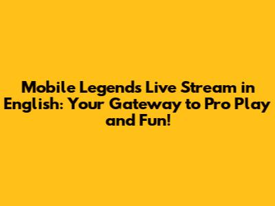 Mobile Legends Live Stream In English