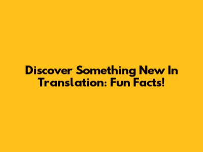 Discover Something New In Translation: Fun Facts!