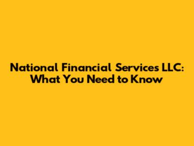 National Financial Services LLC: What You Need To Know