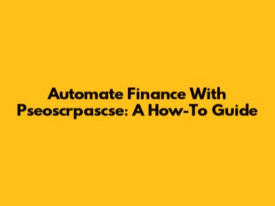 Automate Finance With Pseoscrpascse: A How-To Guide