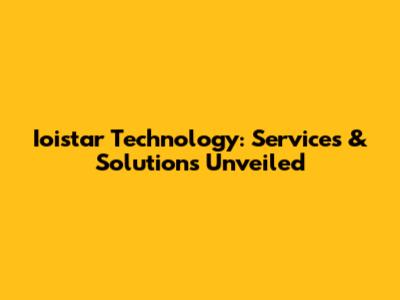 Ioistar Technology: Services & Solutions Unveiled